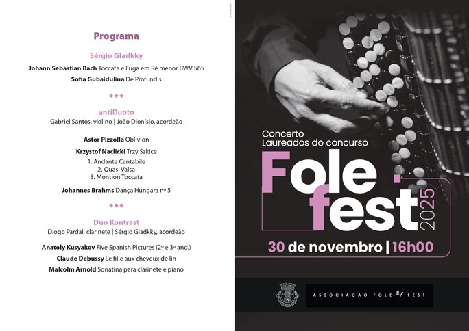 Concerto de Laureados – Mafra 2025 Concerto de Laureados – Mafra 2025 Share EmailXFacebookPinterestLinkedinVkontakte Dezembro 13, 2025 Folefest 2025, Noticias